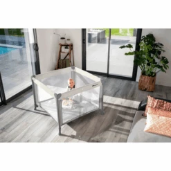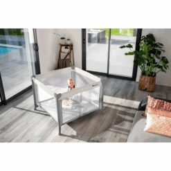 Bugaboo Cuna De Viaje Stardust Grey Melange Con Sábana Ajustable De Algodón Stardust Mineral White