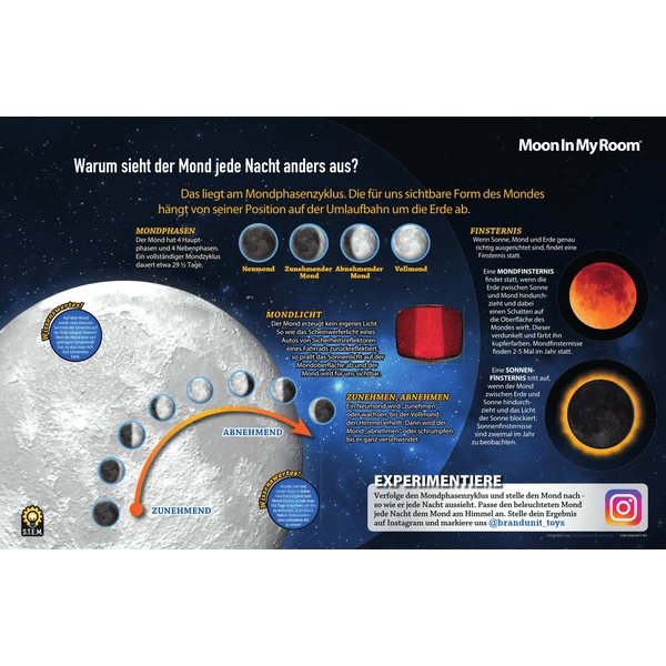 - El póster didáctico incluido te ayuda con información interesante sobre las fases de la luna, el eclipse lunar y el eclipse solar.