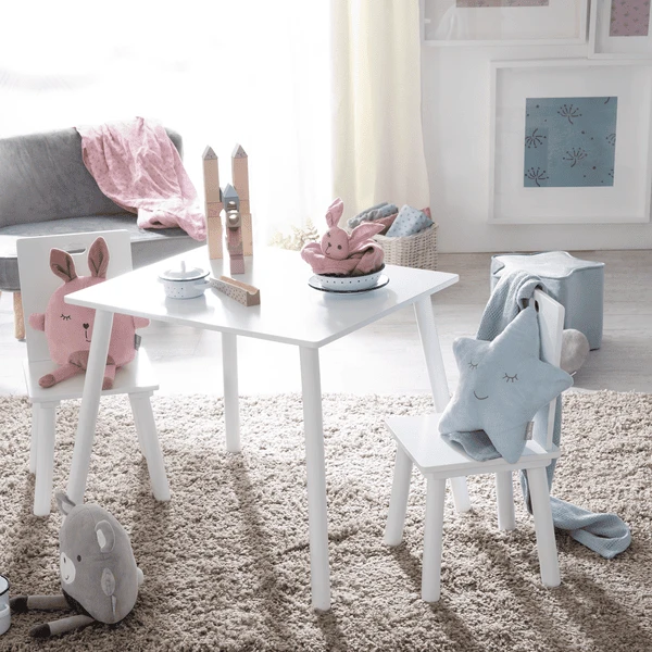 Consta de una atractiva mesa infantil y dos sillas a juego.
