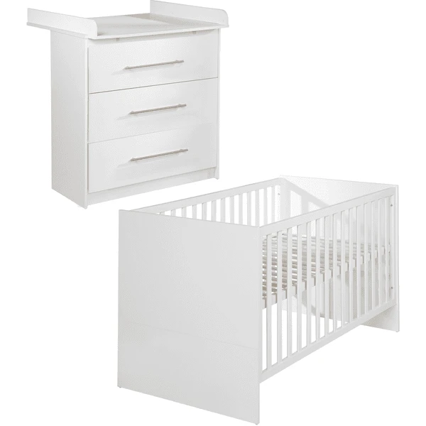 Especialmente cómoda para levantar a su bebé de la cama es la posición superior de la cuna de triple altura ajustable. Los 3 peldaños desmontables permiten a su hijo entrar y salir con seguridad. La roba cuna combi «Maren» fue desarrollada en Alemania y cumple con las normas de seguridad actuales según EN 716.