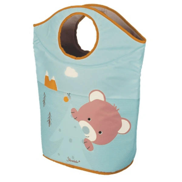 Práctica cesta de almacenamiento plegable con el motivo del oso Ben. Dobla las dos manijas y tendrás una abertura redonda para tirar la ropa sucia. Cuando la cesta de la ropa está llena, se puede llevar fácilmente. Si no es necesario, puedes doblarlo para ahorrar espacio. La cesta también es genial para guardar los peluches.