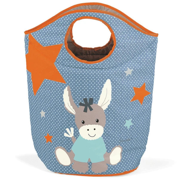 Práctica cesta de almacenamiento plegable con el motivo Donkey Emmi. Dobla las dos manijas para crear una abertura redonda para tirar la ropa sucia. Cuando la cesta de la ropa está llena, se puede llevar fácilmente. Si no es necesario, puedes doblarlo para ahorrar espacio. La cesta también es genial para guardar los peluches.