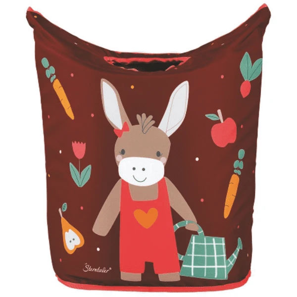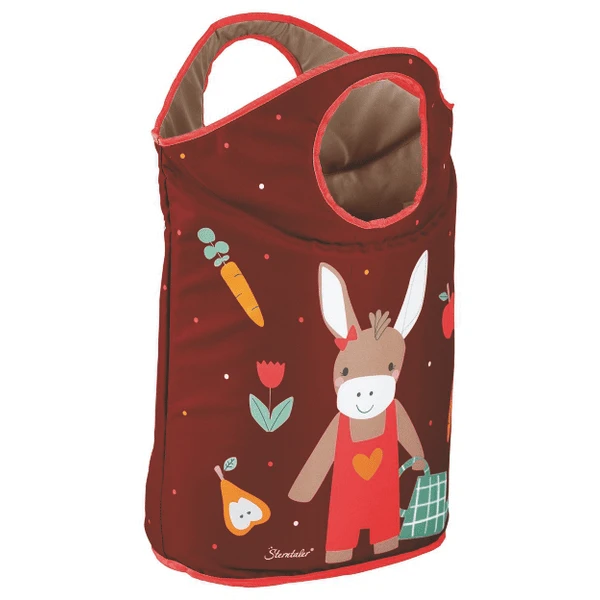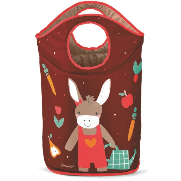 Práctica cesta de almacenamiento plegable con el motivo del burro «Emmily». Si se pliegan las dos asas de transporte, queda una abertura redonda para meter la ropa. Cuando el cesto de la ropa sucia está lleno, se puede transportar fácilmente. Si no se necesita, se puede plegar para ahorrar espacio. La cesta también puede utilizarse para guardar los peluches.