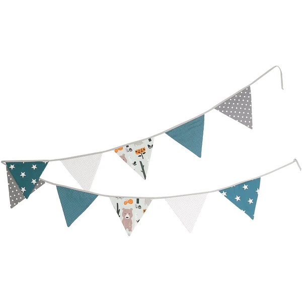 La cadena del banderín está hecha de algodón puro y certificado por ÖkoTex y es adecuada para bebés y niños.