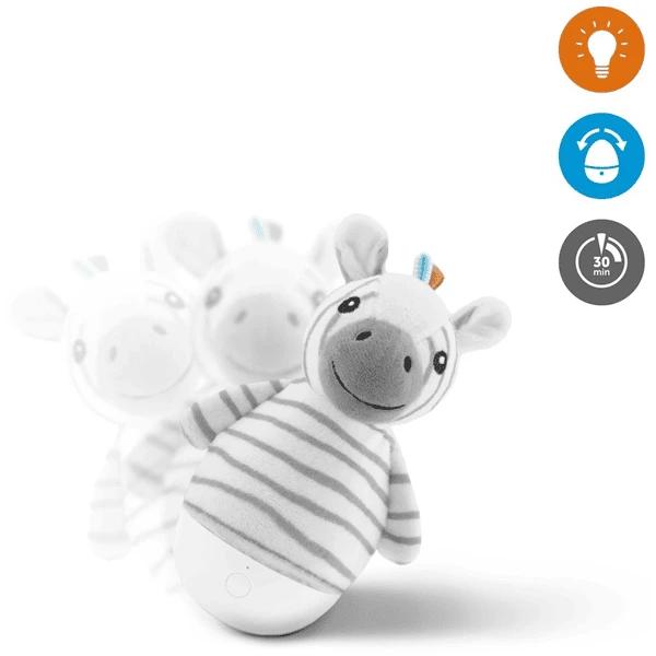 Se enciende y apaga fácilmente al girar. Con la luz nocturna se puede elegir entre varios colores. Después de unos 30 minutos se apaga por sí sola. La funda de felpa es extraíble y se puede lavar. La luz nocturna se carga a través de un cable USB que se incluye en el envío.